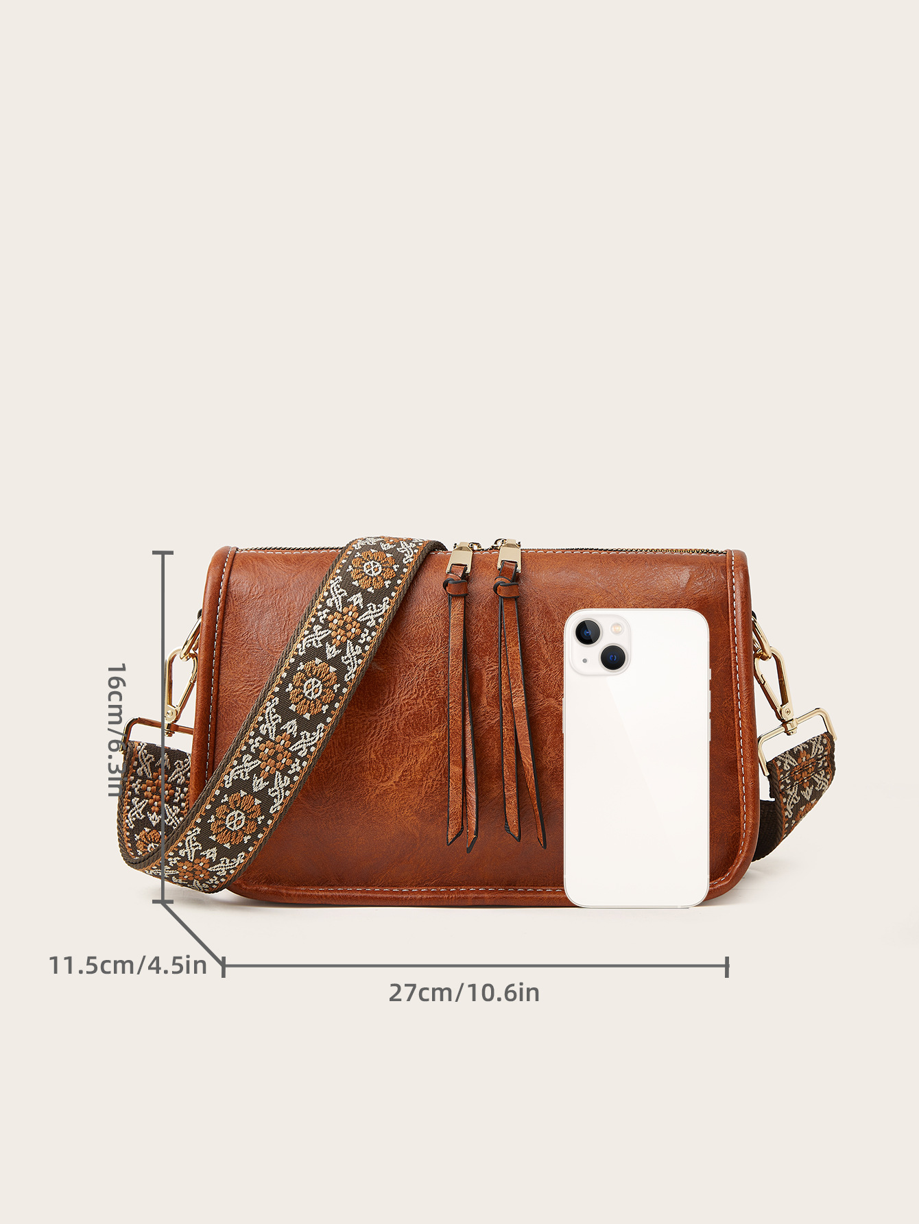 3. The extra long, detachable strap for wearing over the shoulder or cross-body.