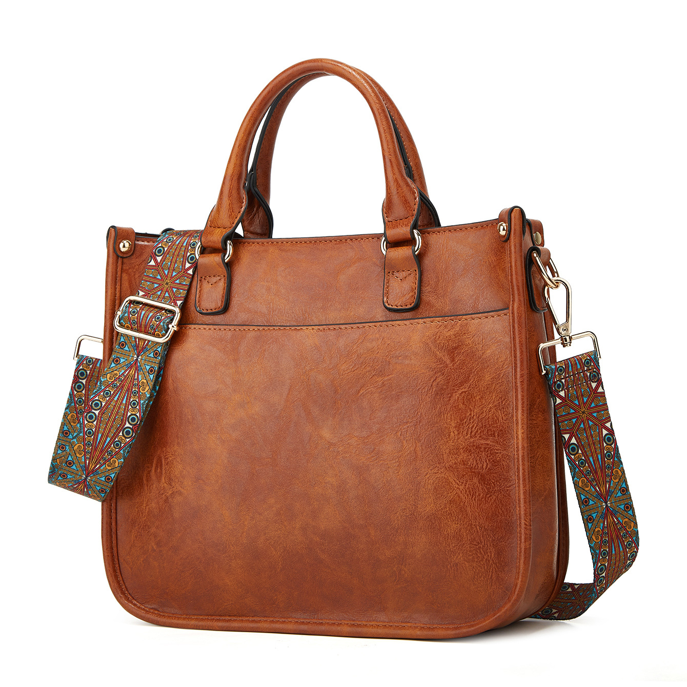 Ladies'Crossbody Bag with Wide Strap and Detachable Shoulder Strap Brown