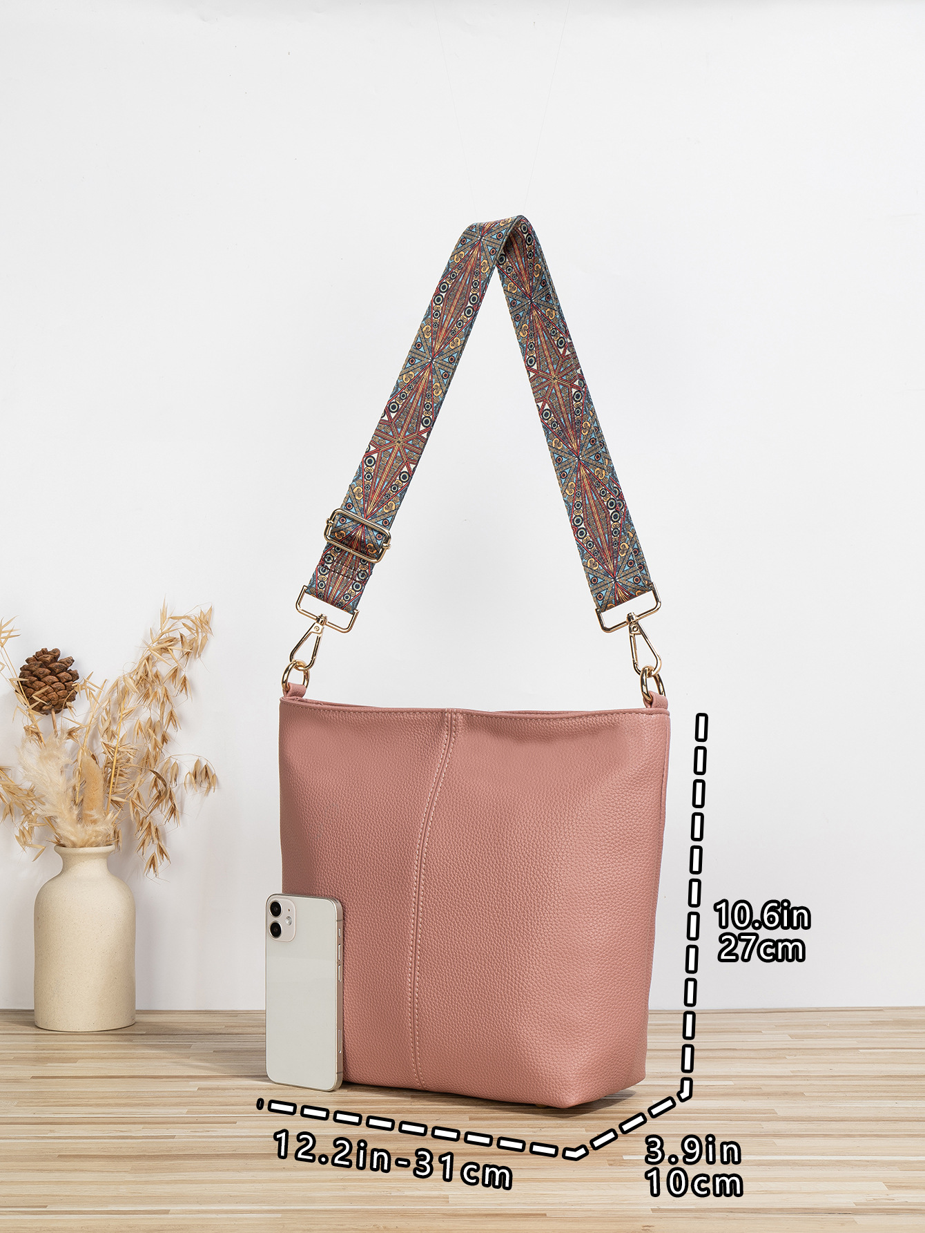 Women Shoulder Bag Vintage Crossbody Purse Handbag with Leopard Guitar Strap Hobo Bag Pink