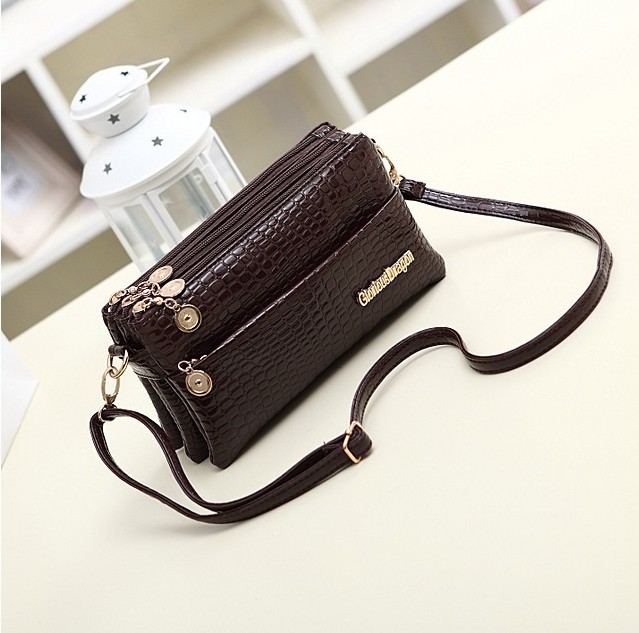 Women's Handbag With Crocodile Pattern Handbag, Three Compartment Small Bag Brown