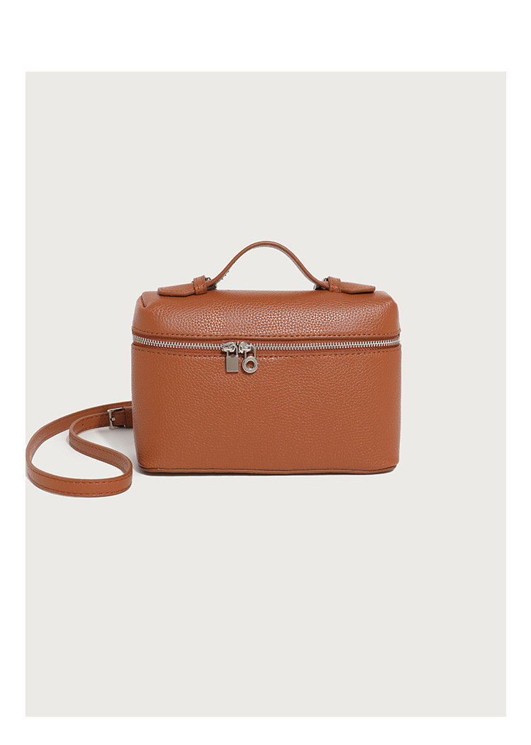 Ladies' Double Zipper Handbag Makeup Bag Brown