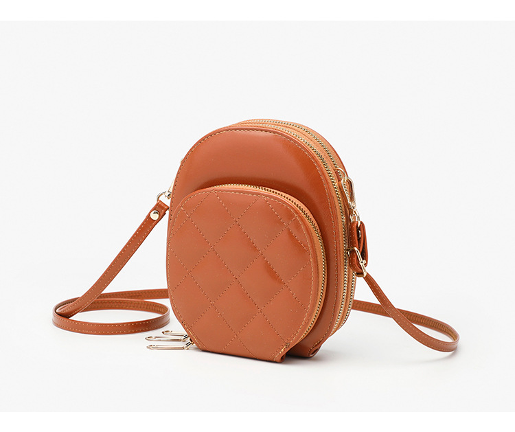 Multi Layer Large Capacity Diamond Grid Phone Bag Brown