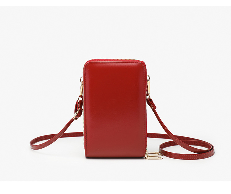 Female Retro Diagonal Cross Phone Bag Three layer Zipper Bag Small Bag Red