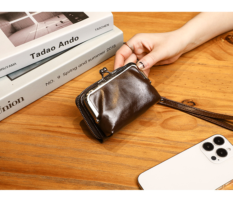 Women's Clip Bag Zero Wallet Minimally Handheld Bag Brown
