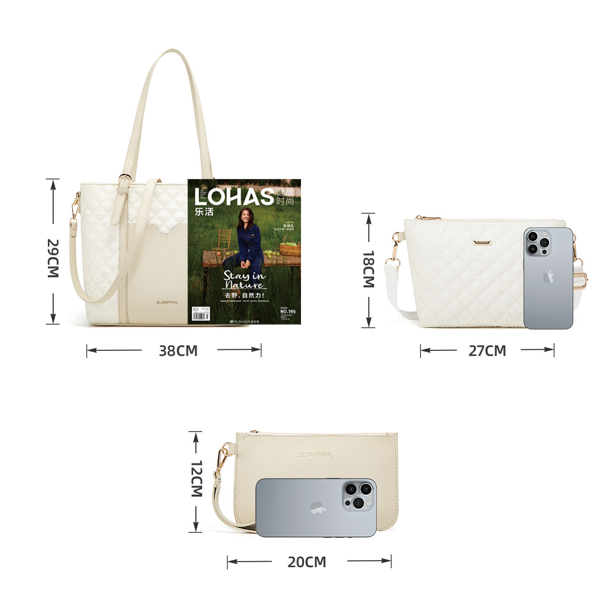 Women Fashion Synthetic Leather Handbags Tote Bag Shoulder Bag 3pcs White