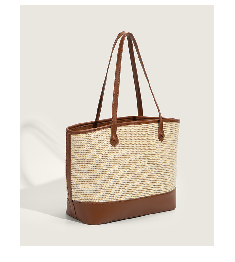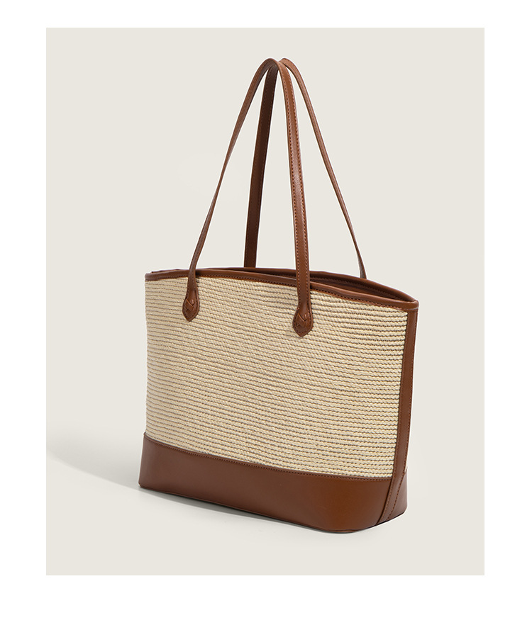 Ladies' Fashion Beach Straw Woven Bag Simple Shoulder Bag Brown
