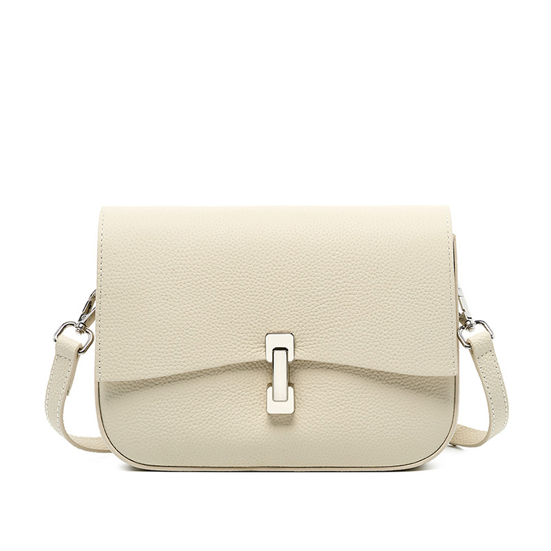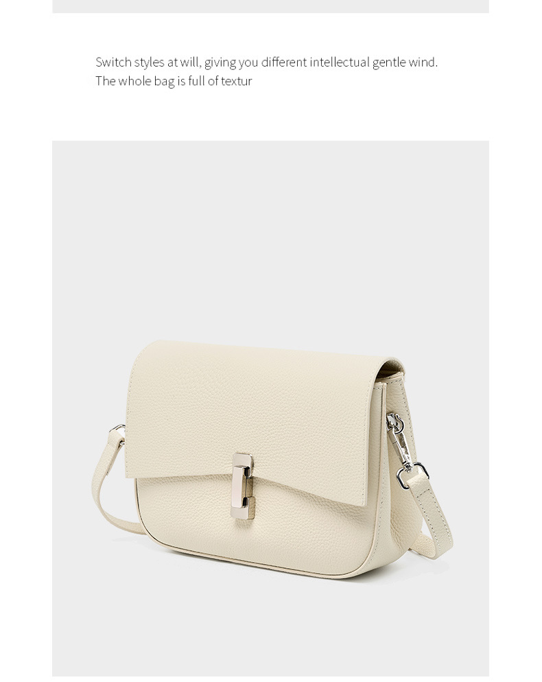 Genuine Leather Women Square Crossbody Shoulder Purse Flap Satchel Handbag White