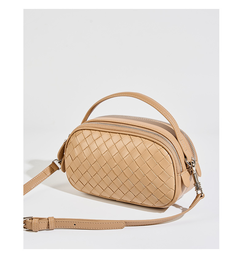 Genuine Leather Knitted Double Zipper Shoulder Crossbody Bag Yellow