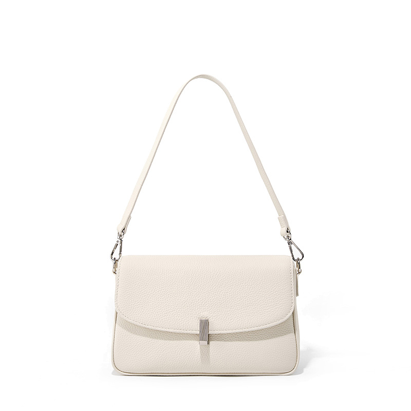Ladies'Cowhide Shoulder Bag Tote Handbag White