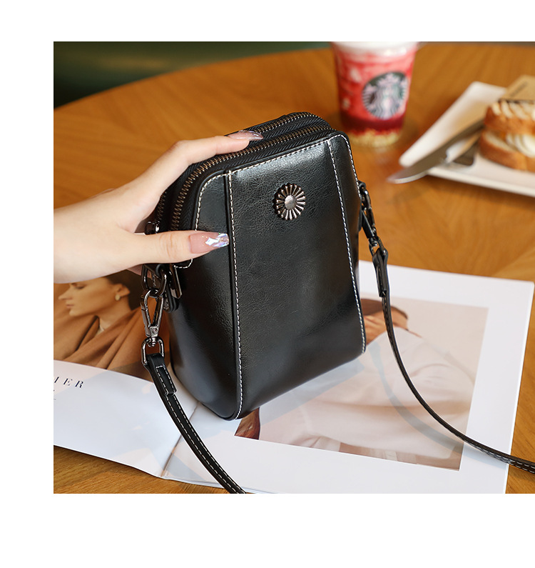 Genuine Leather Women Shoulder Bag Mobile Phone Bag Black