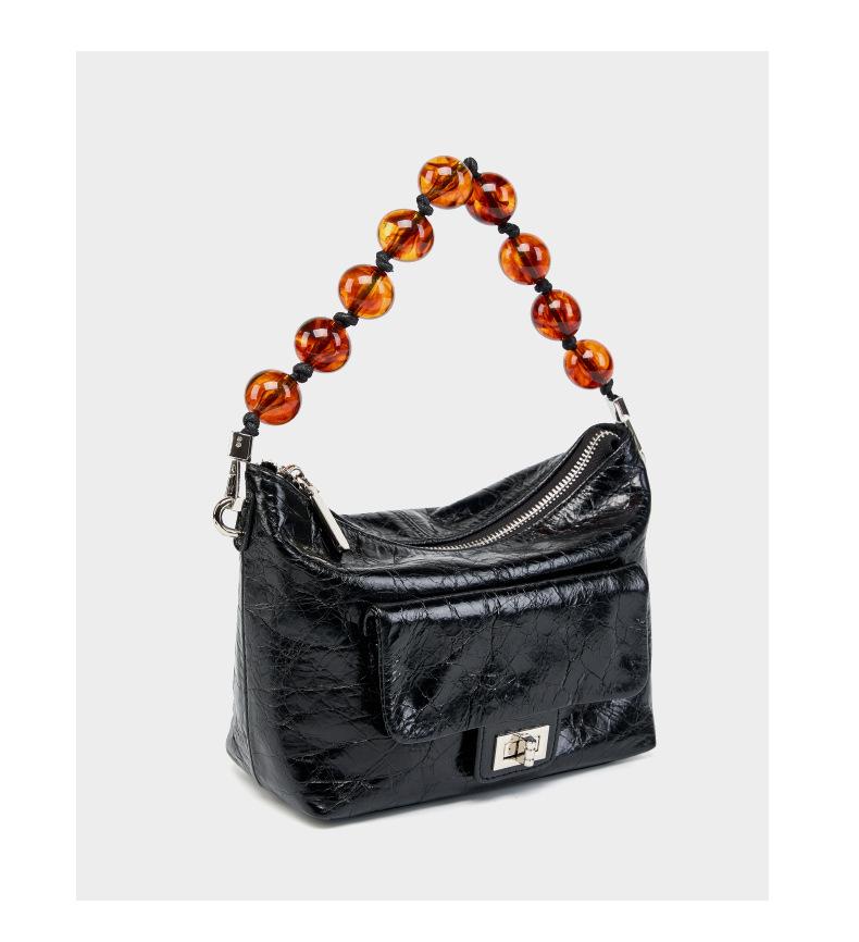 Genuine Leather Vintage Oil Wax Leather Pleated Handbag Black