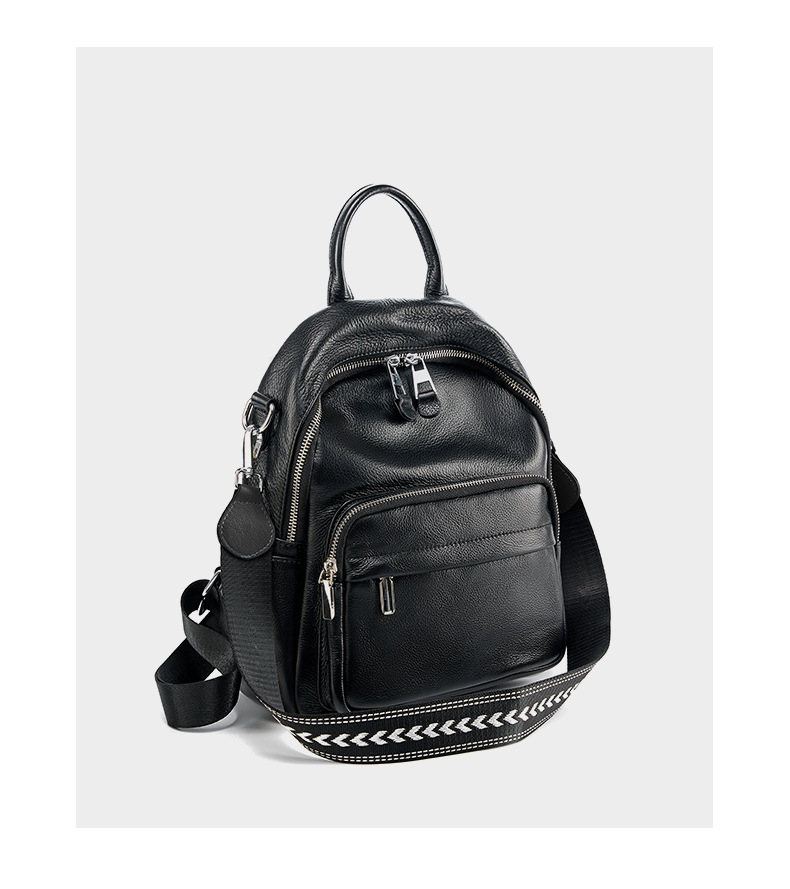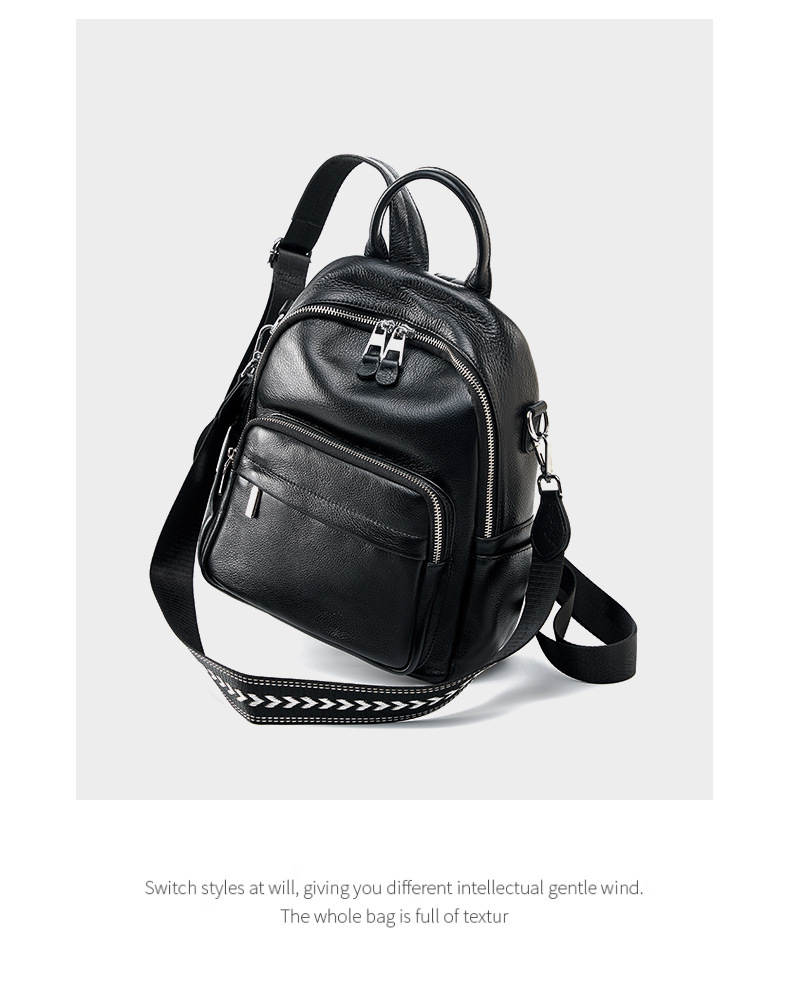 Genuine Leather Ladies' Large Capacity Travel Backpack Black