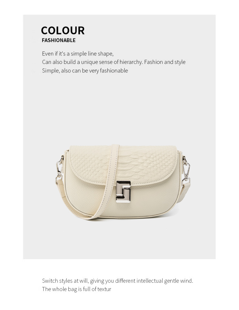 Ladies' Genuine Leather Crossbody Bag Large Capacity Small Square Bag White