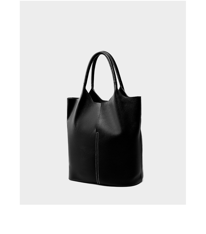 Ladies' Large Capacity Genuine Soft Leather Tote Bag Black