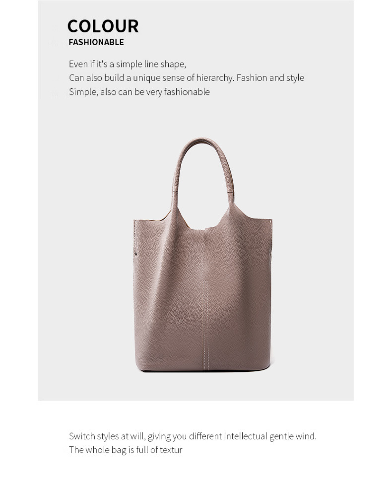 Ladies' Large Capacity Genuine Soft Leather Tote Bag Grey