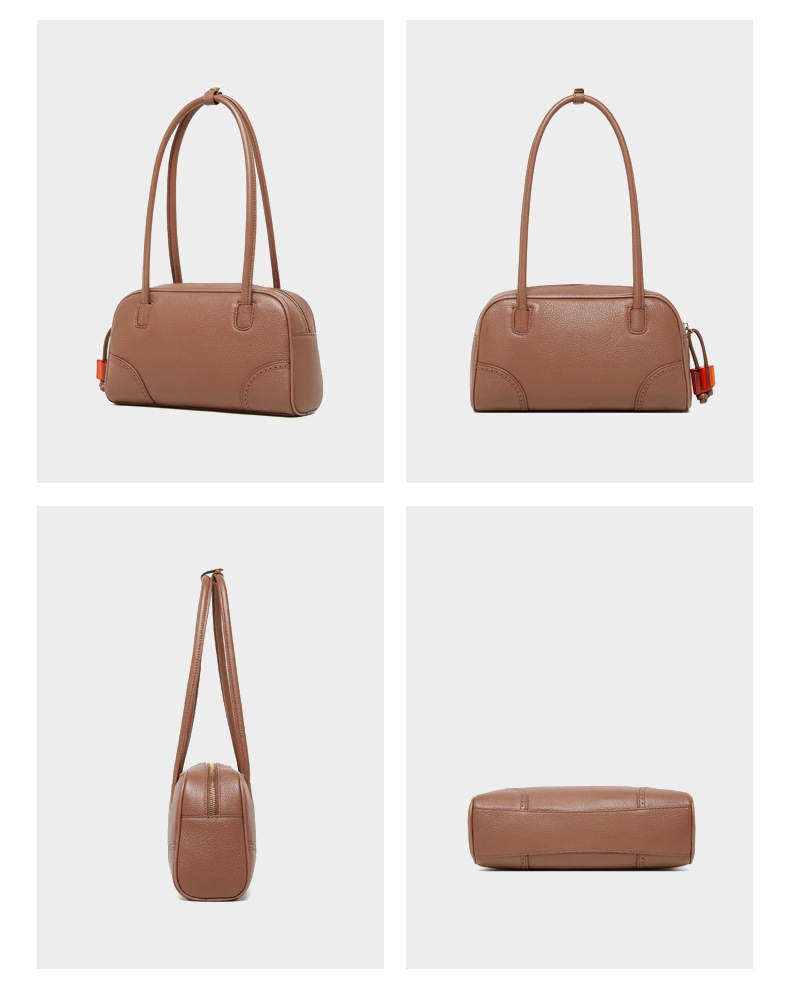 Genuine Leather Handbag Large Capacity Bowling Bag Brown