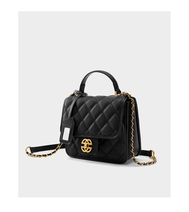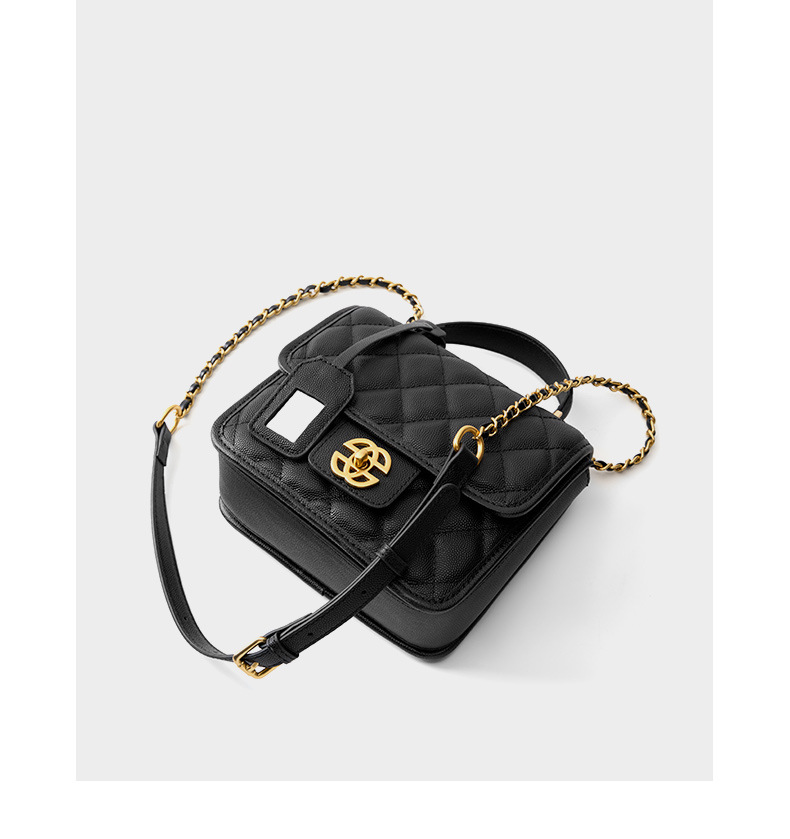 Genuine Leather Crossbody Bags for Women Trendy Ladies Shoulder Purse Satchel HandBag with Chain Strap Black