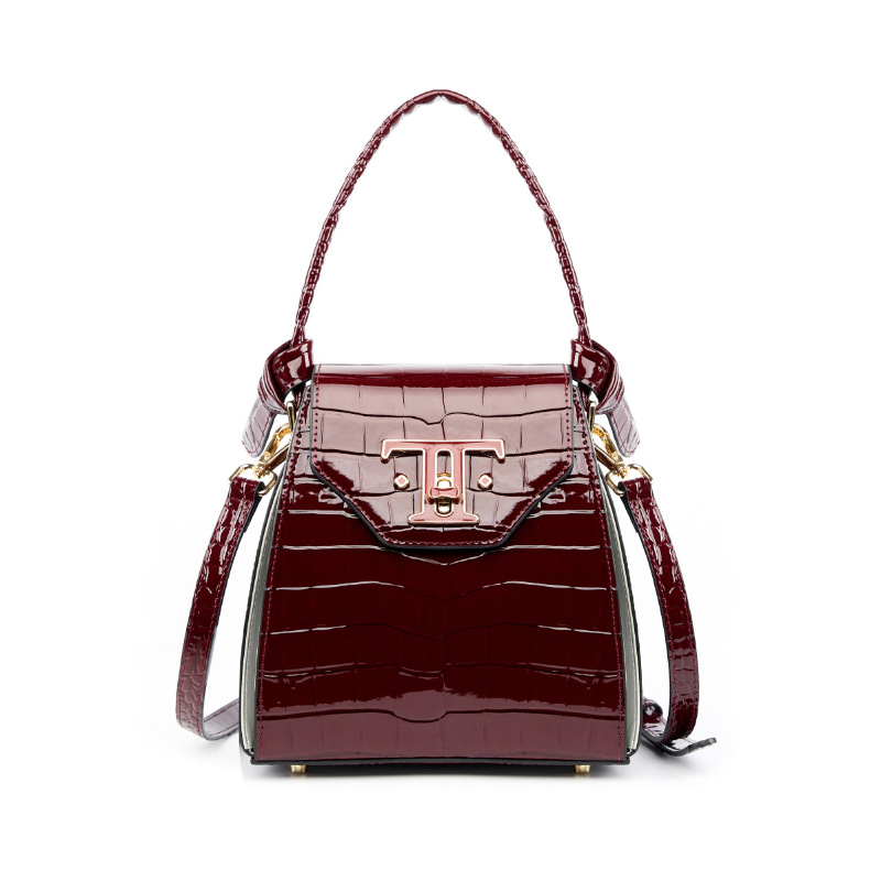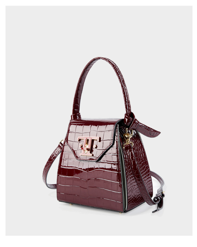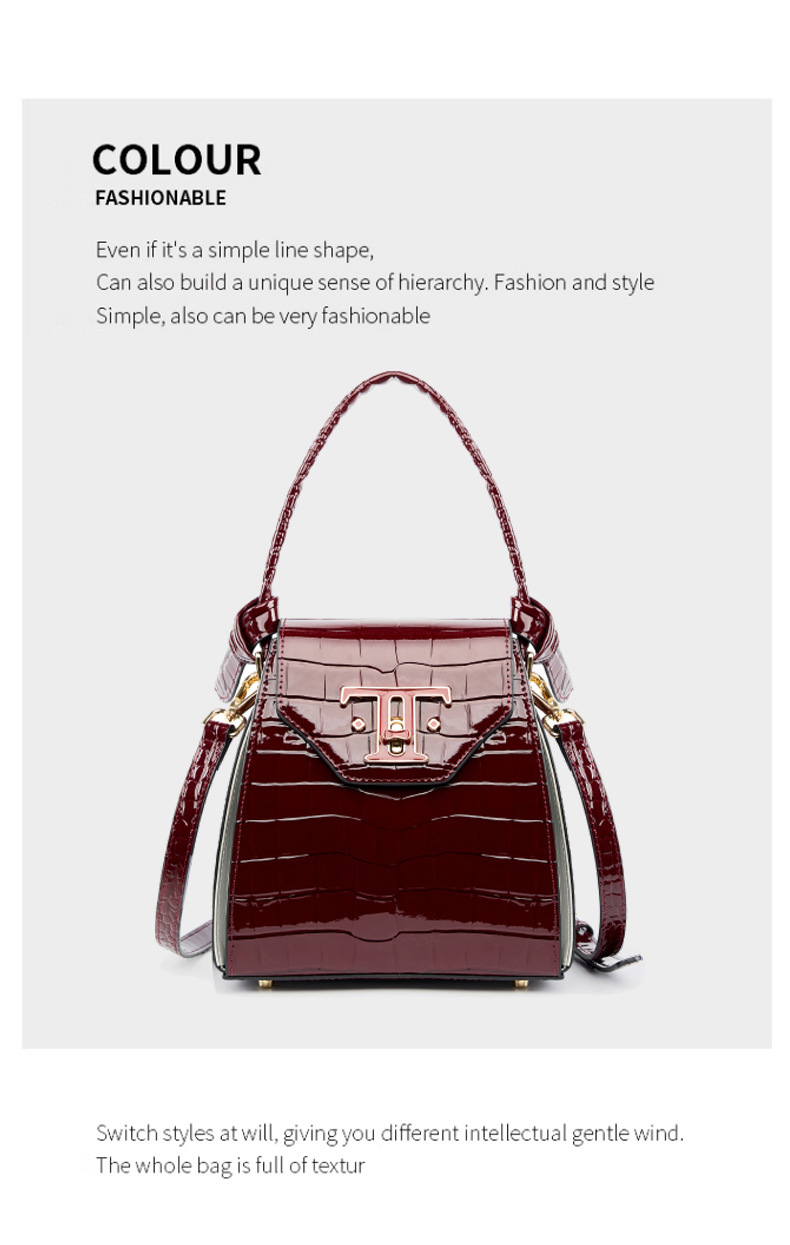 Women Genuine Leather Handbags Crocodile Pattern Handheld Cross Bag Red
