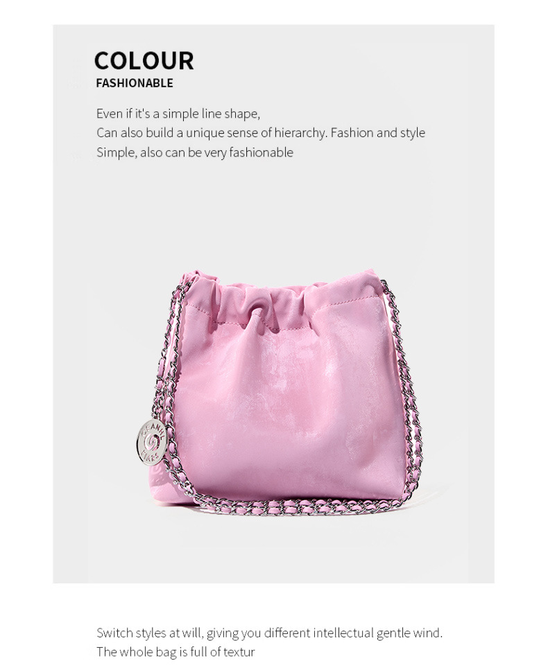 Genuine Leather Women's Handbag Beach Bag Simple Shoulder Bag Pink