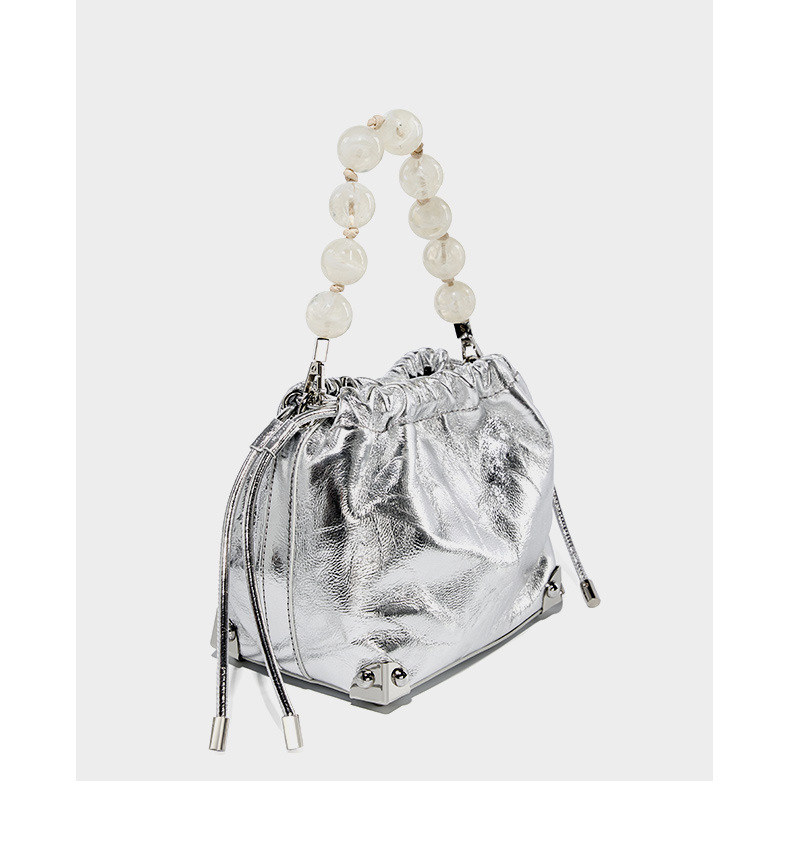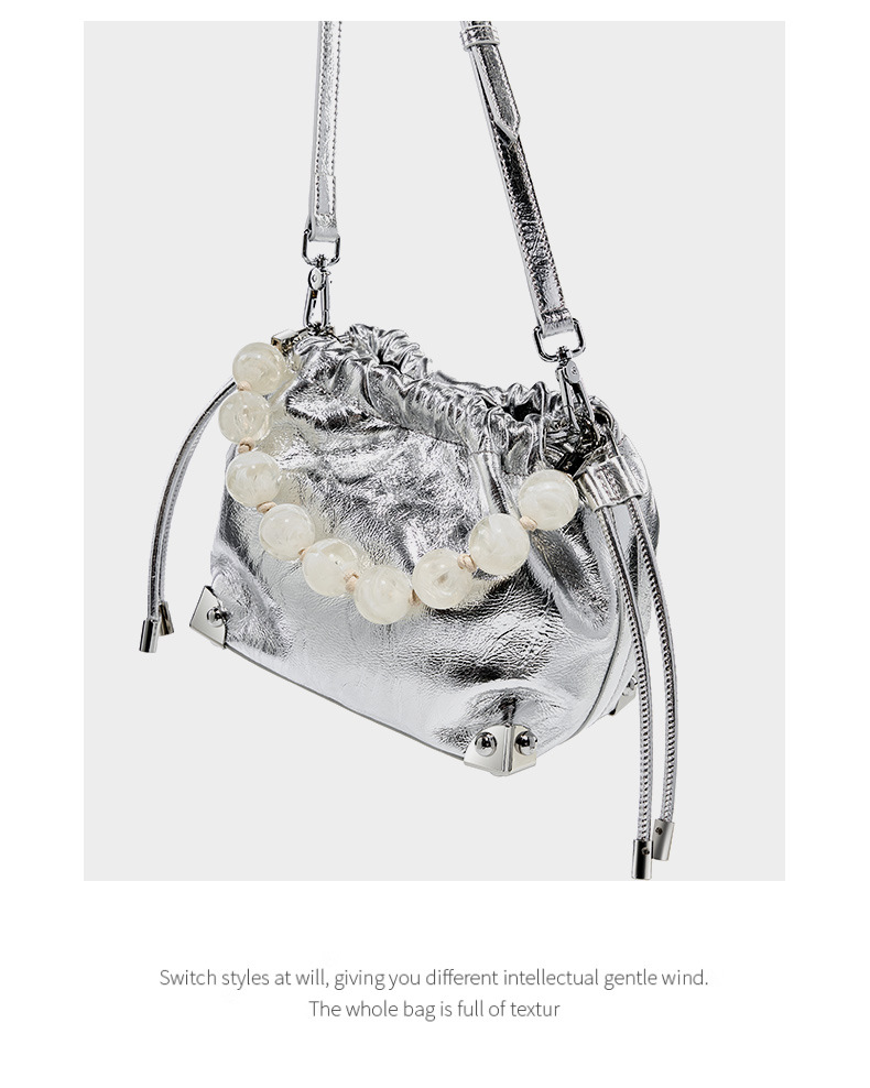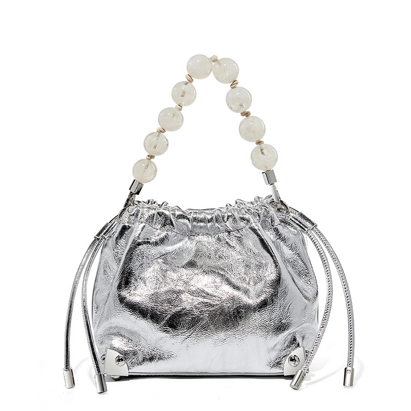 Genuine Leather European and American Large Capacity Handbag Silver
