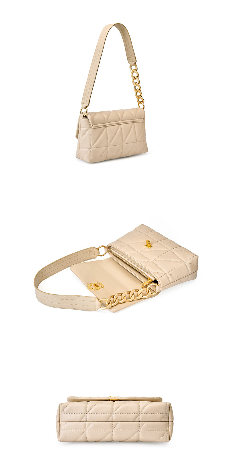 Genuine Leather Women Shoulder Bag Vintage Crossbody Purse Handbag Cream