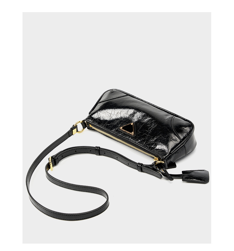 Genuine Leather Women Trendy Cresent Shoulder Bag Hobo Handbags Black