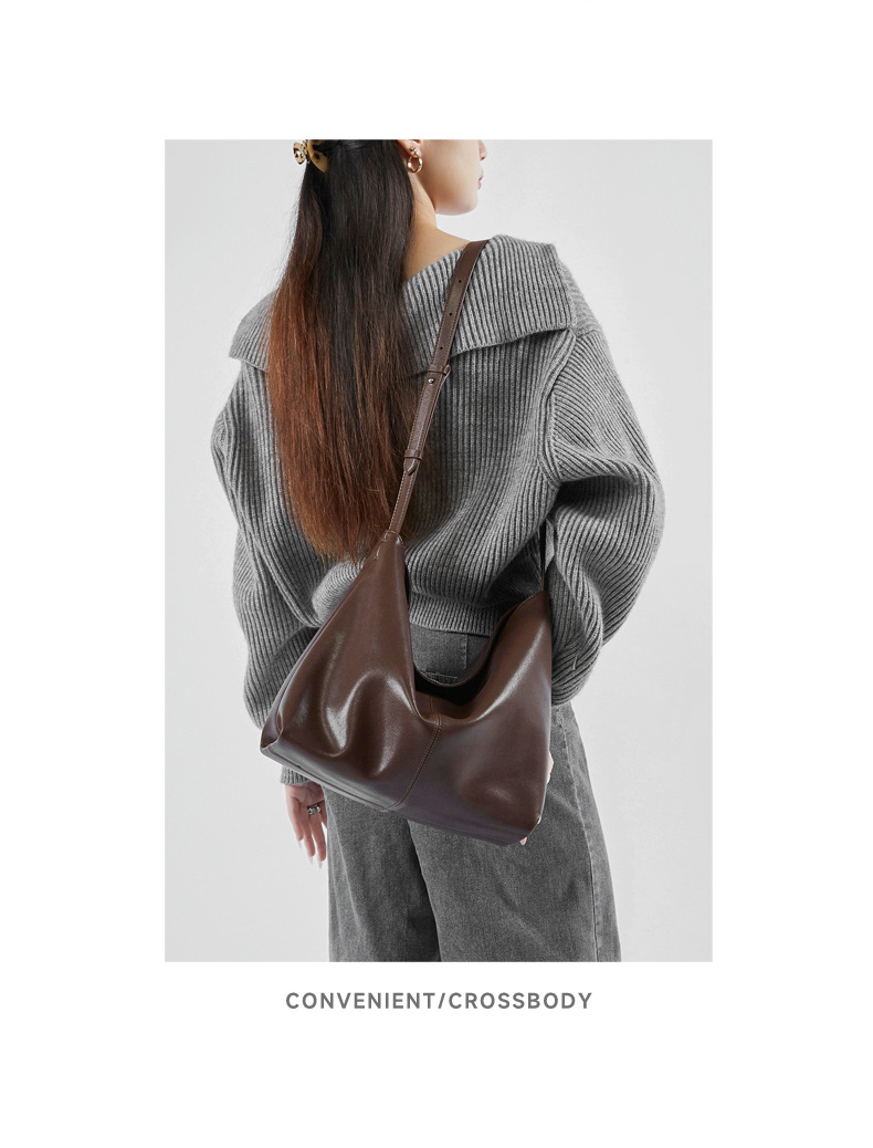 Genuine Leather Womens Fashion Shoulder Bags Large Tote Bag Retro Purse Handbag Brown
