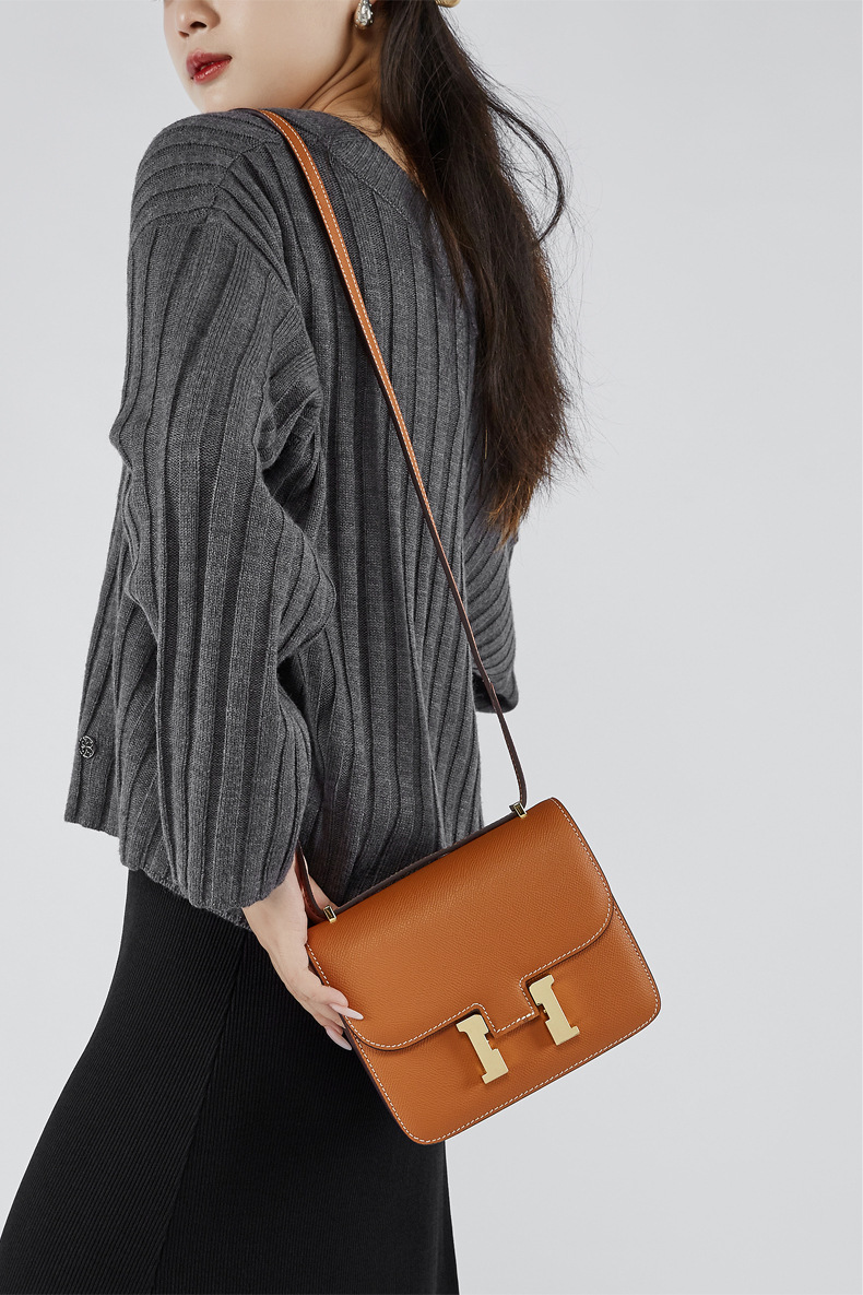 Genuine Leather Women Shoulder Purses and Handbags Orange