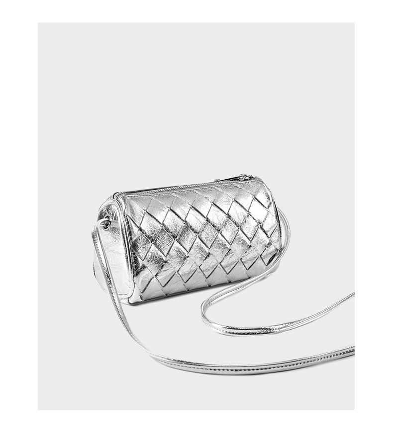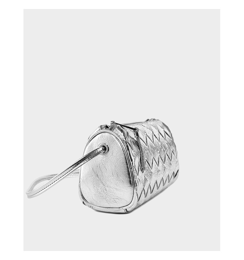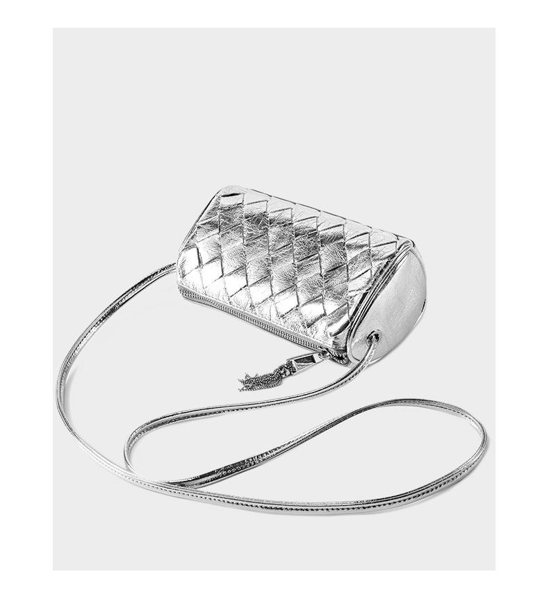 Women Trendy Small Shoulder Bag Genuine Leather Hobo Handbags Silver
