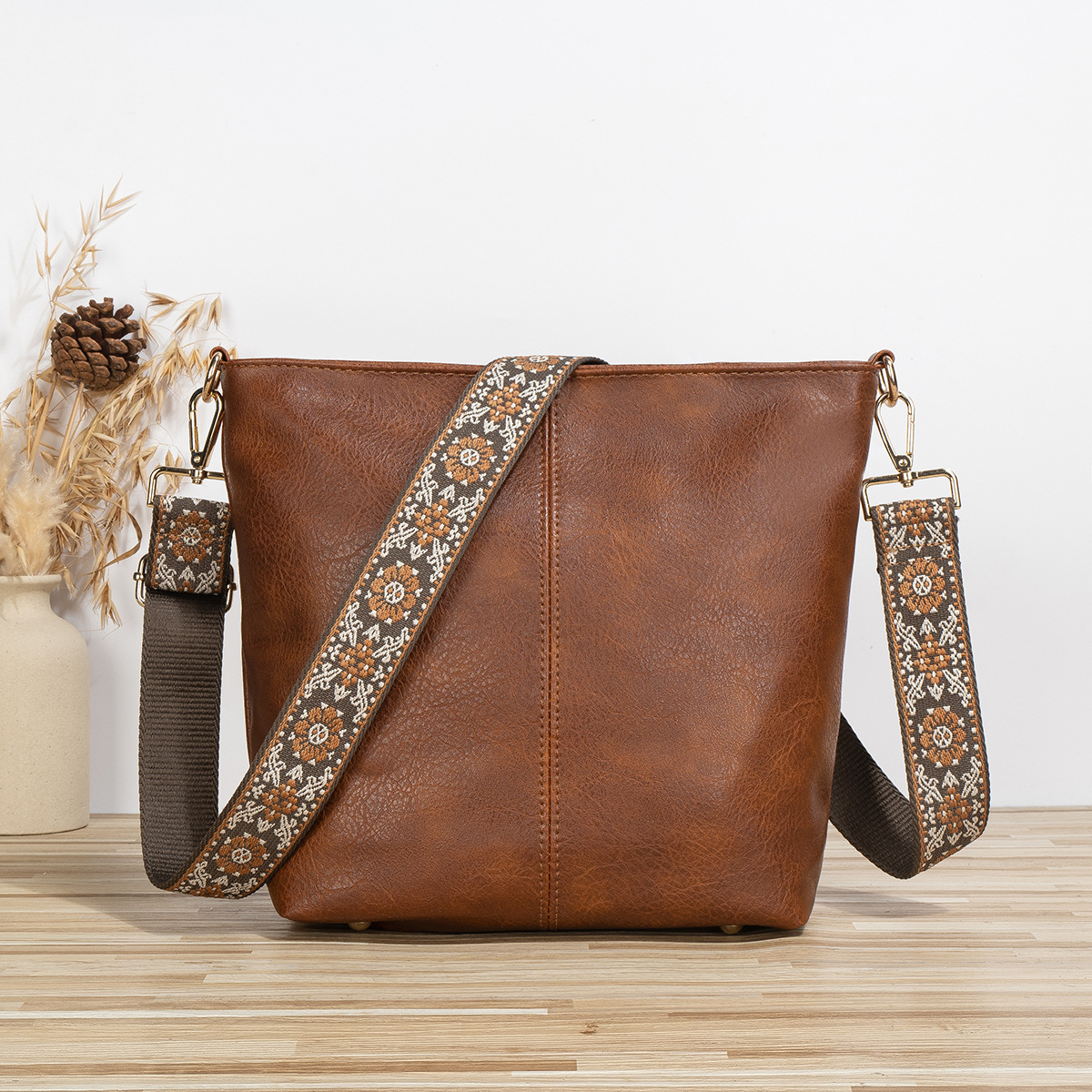 Women Shoulder Bag Vintage Crossbody Purse Handbag with Leopard Guitar Strap Hobo Bag Brown
