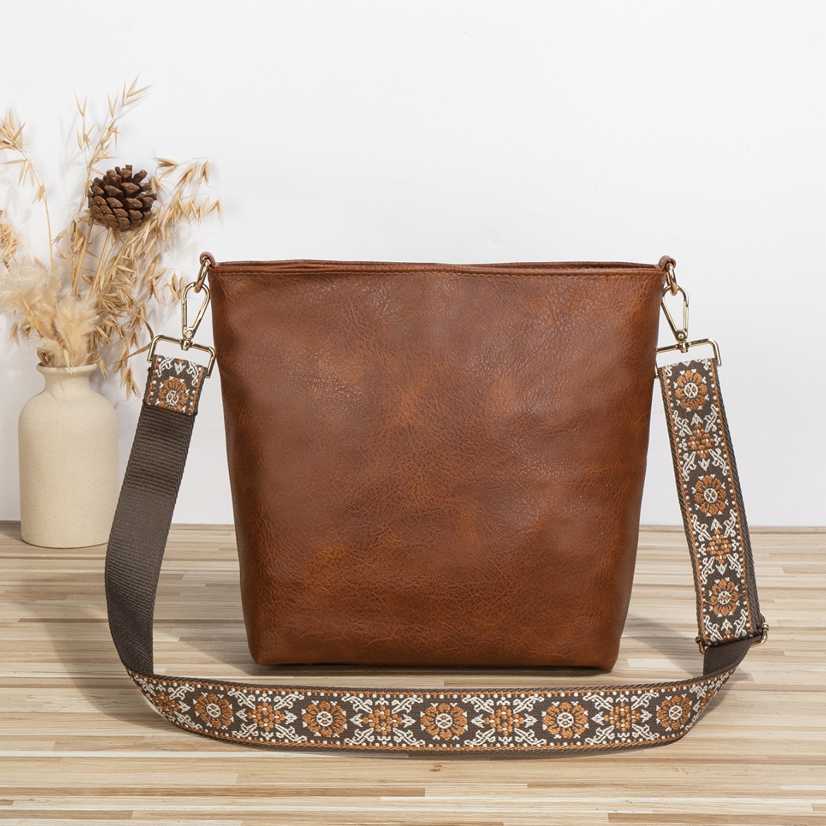 Women Shoulder Bag Vintage Crossbody Purse Handbag with Leopard Guitar Strap Hobo Bag Two Piece Brown
