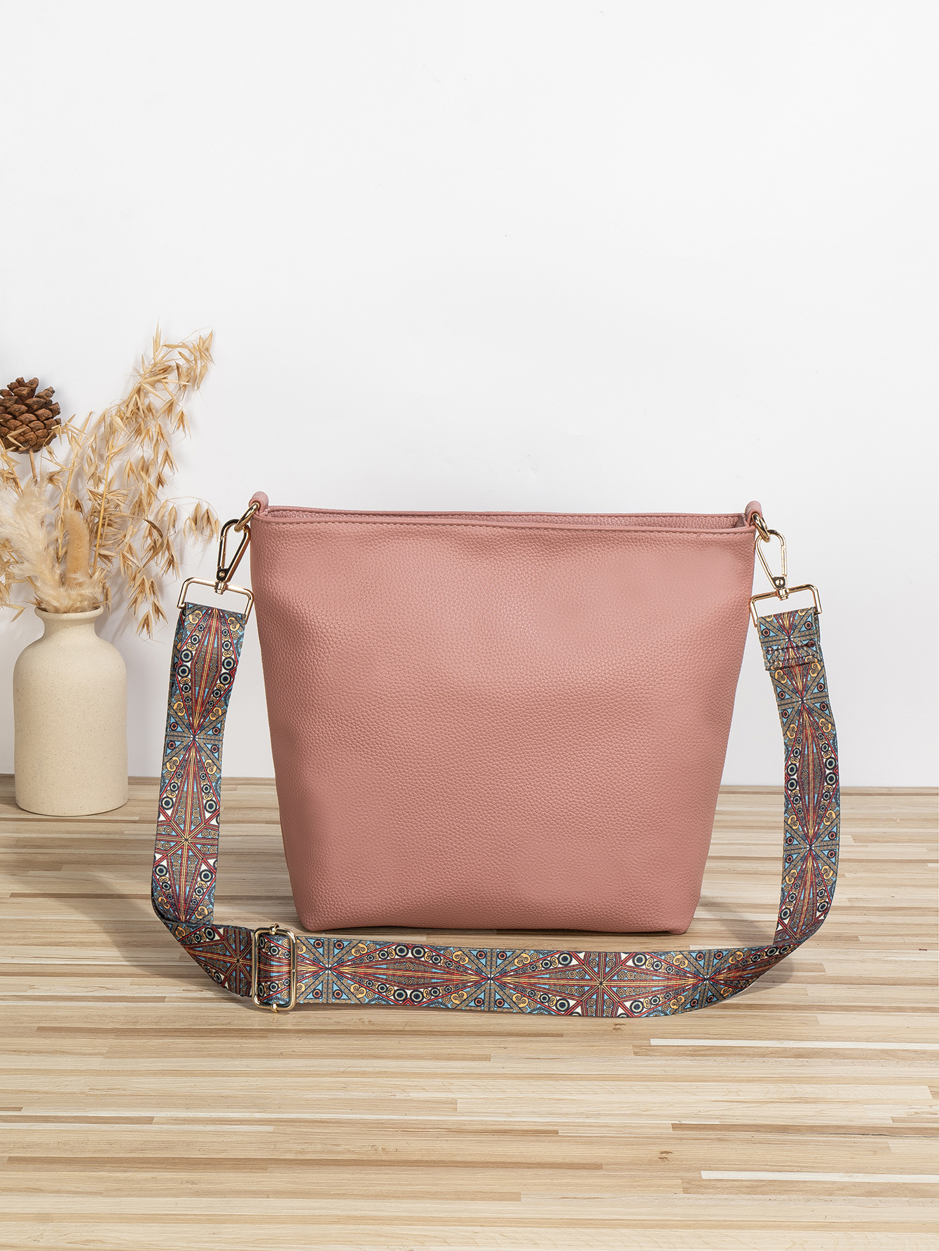 Women Shoulder Bag Vintage Crossbody Purse Handbag with Leopard Guitar Strap Hobo Bag Pink