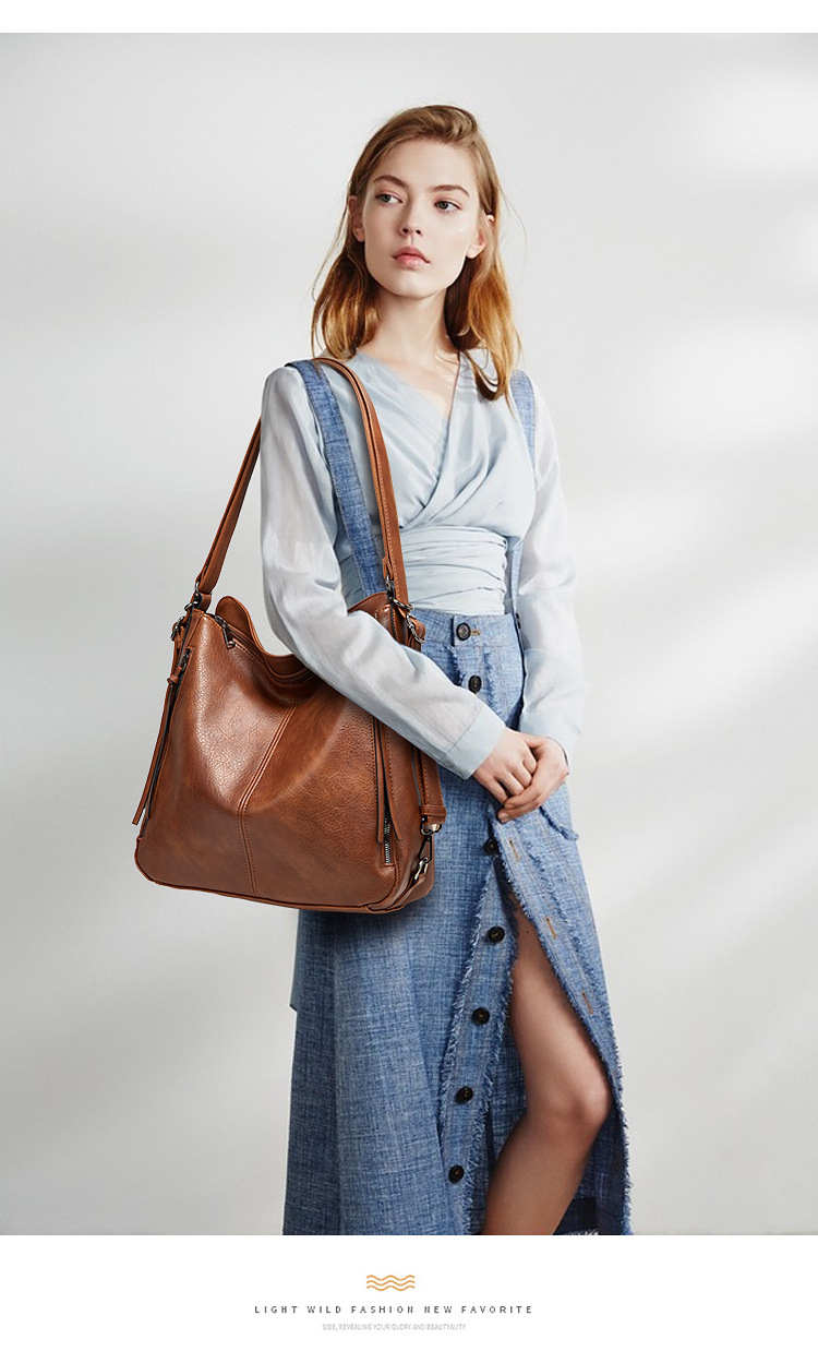Women Tote Bag Handbags PU Leather Fashion Hobo Shoulder Bags Brown