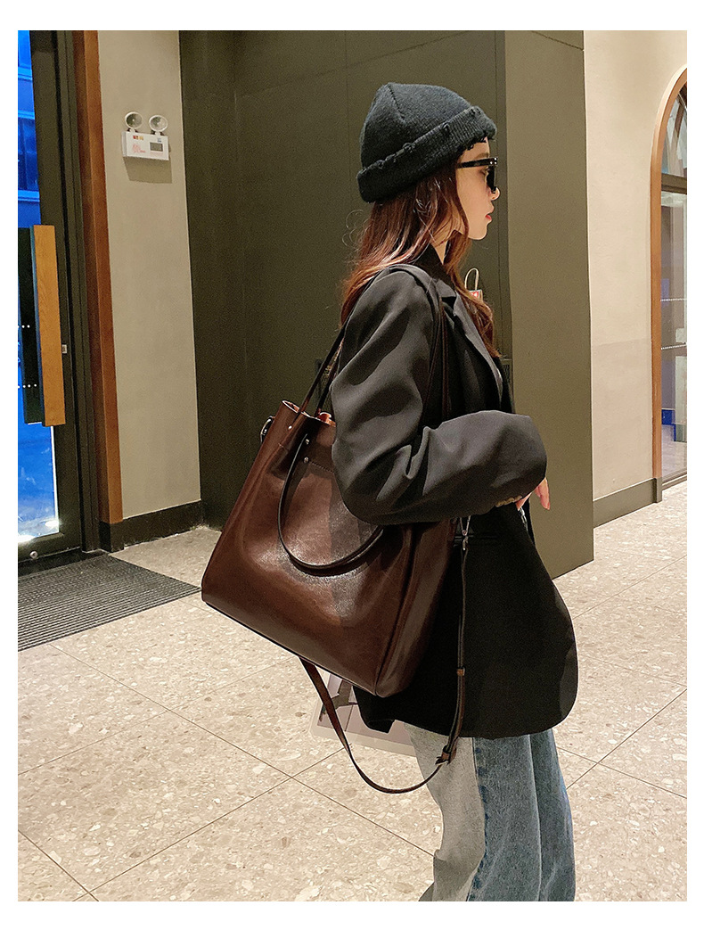 Women Designer Purses and Handbags Big Bucket bags Ladies Travel Crossbody Purse Brown