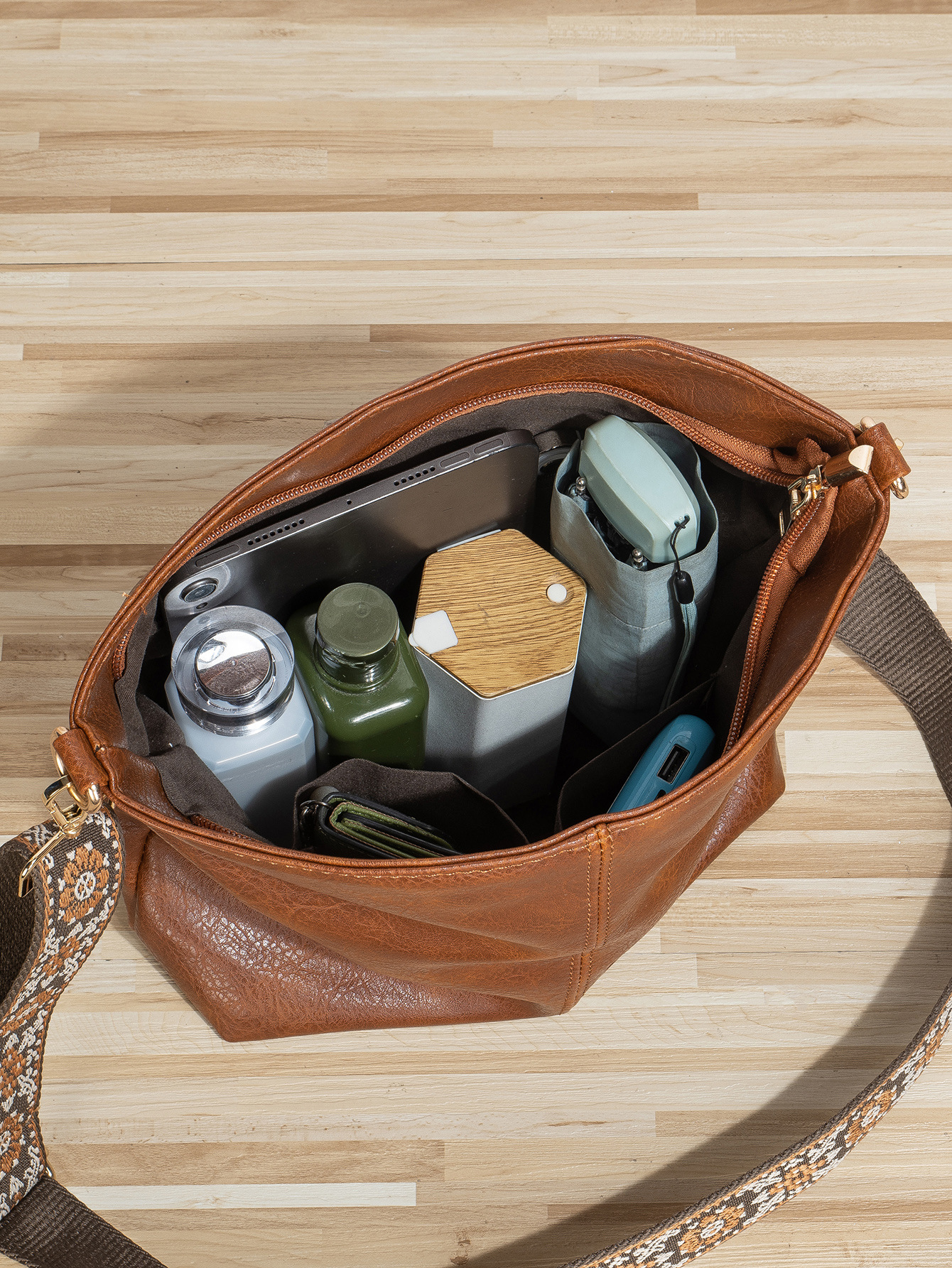 3. The extra long, detachable strap for wearing over the shoulder or cross-body.