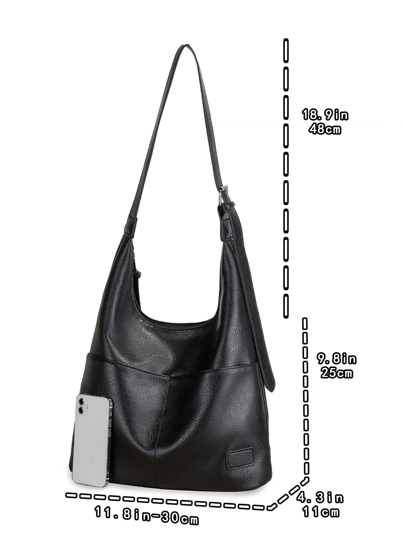 Women Vegan Leather Top Handle Shoulder Purses and Handbags Black