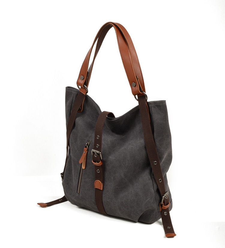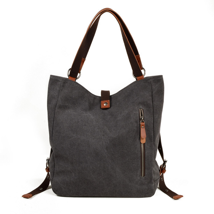 Ladies' Canvas Bag, Large Capacity Ins Backpack Black