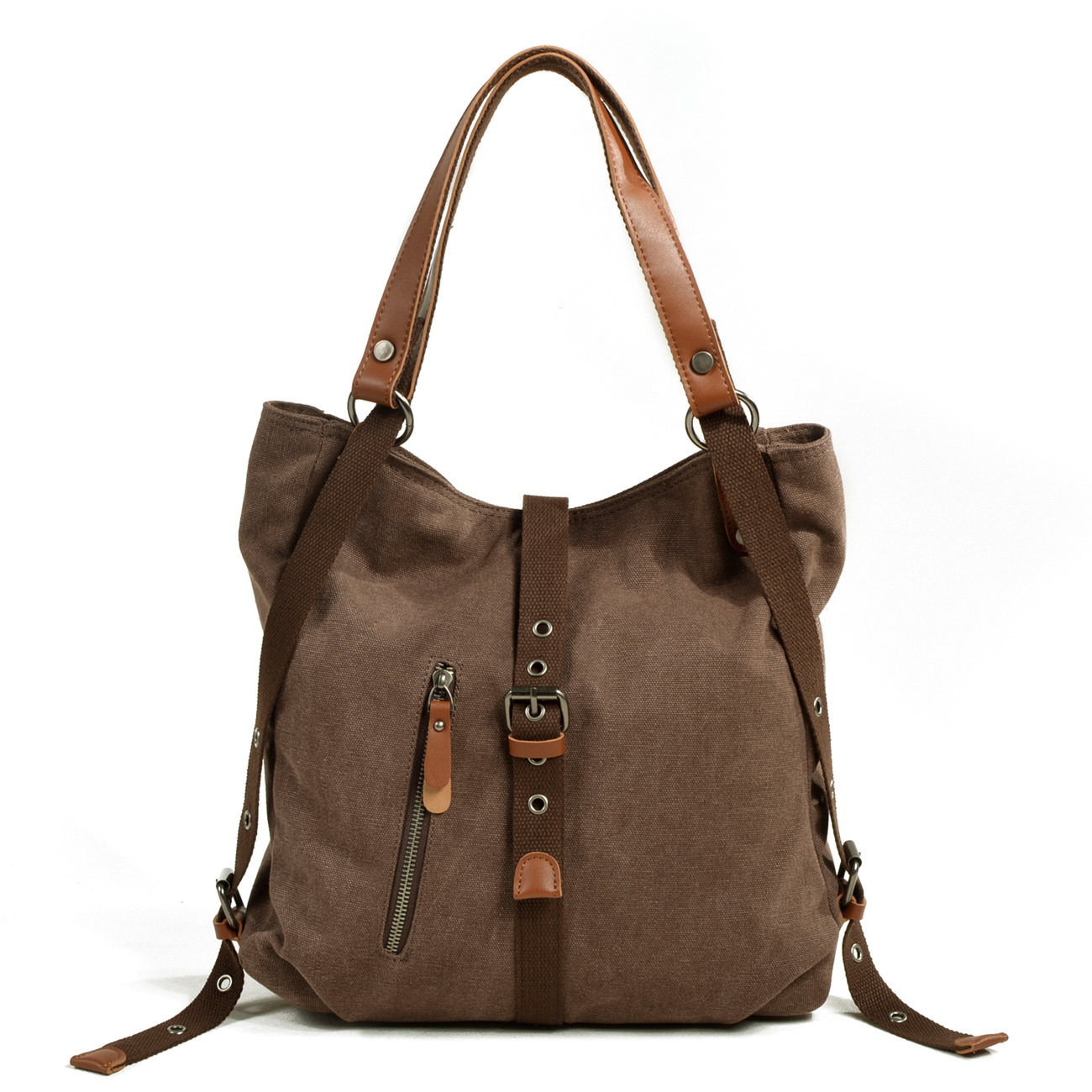 Ladies' Canvas Bag, Large Capacity Ins Backpack Brown