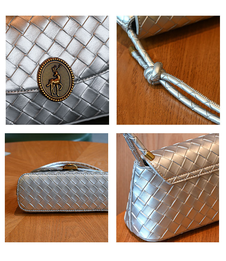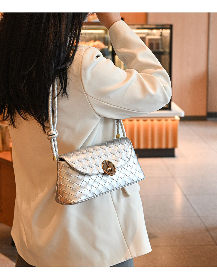 Women's Woven Shoulder Crossbody Bag Handbag Silver