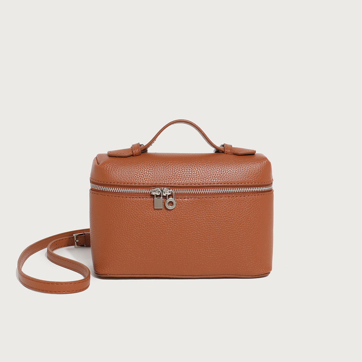Ladies' Double Zipper Handbag Makeup Bag Brown