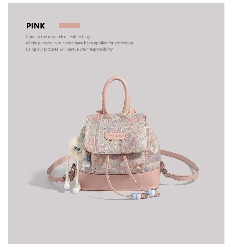 Ladies Embroidered Backpack Outdoor Backpack Pink