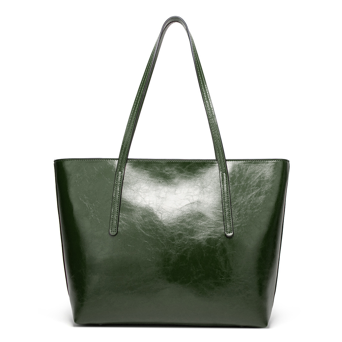 Ladies' Large Capacity Oil Wax Leather Shoulder Bag Tote Bag Green