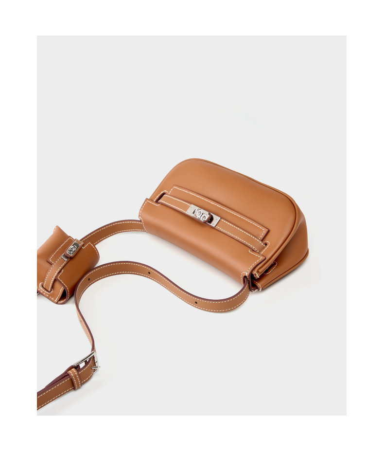 Genuine leather Moove Kelly Mini Multi Functional Saddle Women's Bag Brown