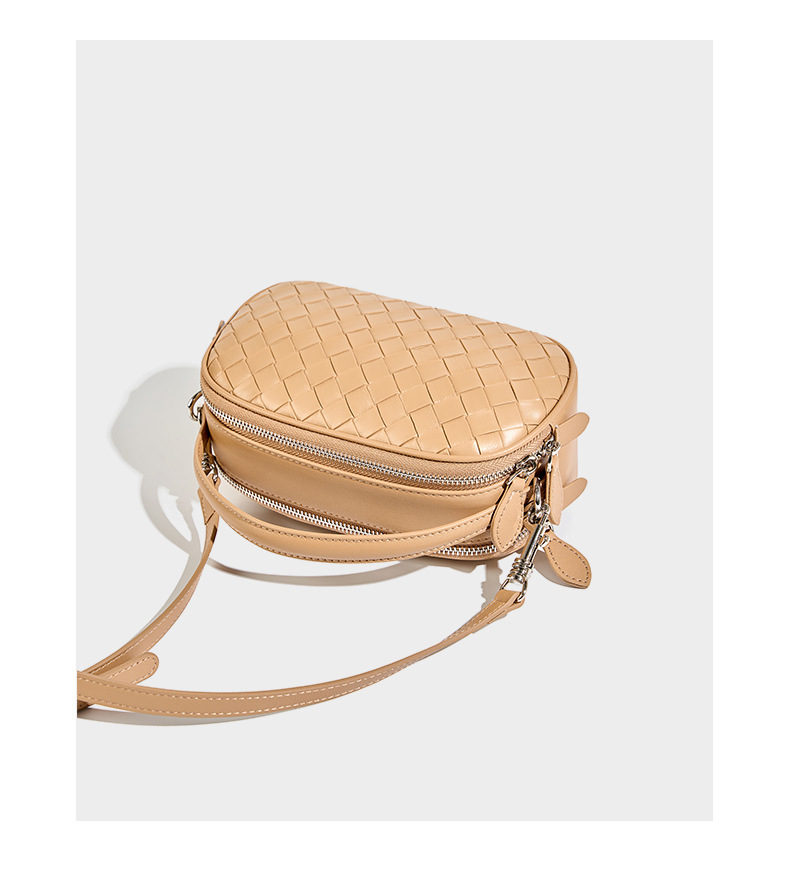 Genuine Leather Knitted Double Zipper Shoulder Crossbody Bag Yellow