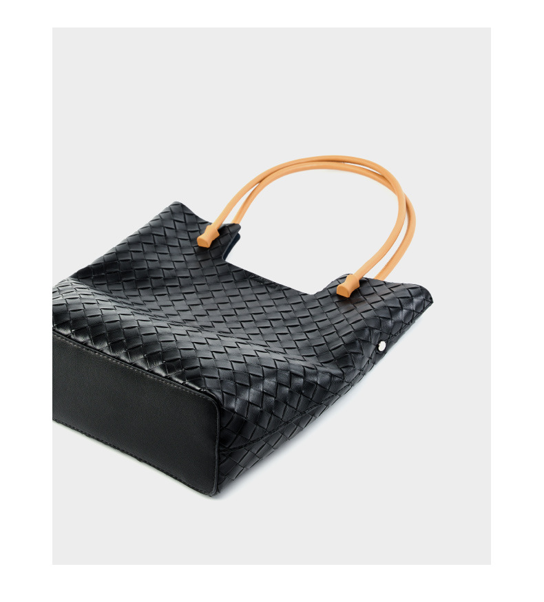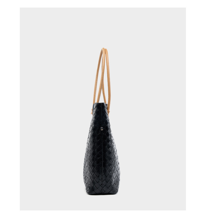 Women's Woven Bag Large Capacity Cowhide Handbag Black