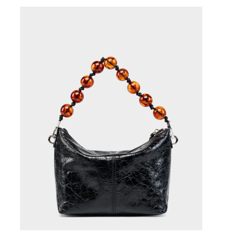 Genuine Leather Vintage Oil Wax Leather Pleated Handbag Black