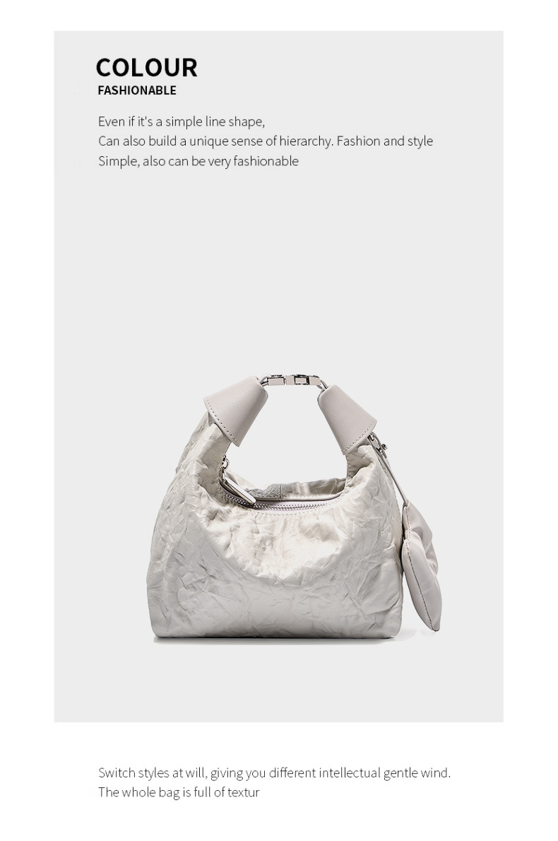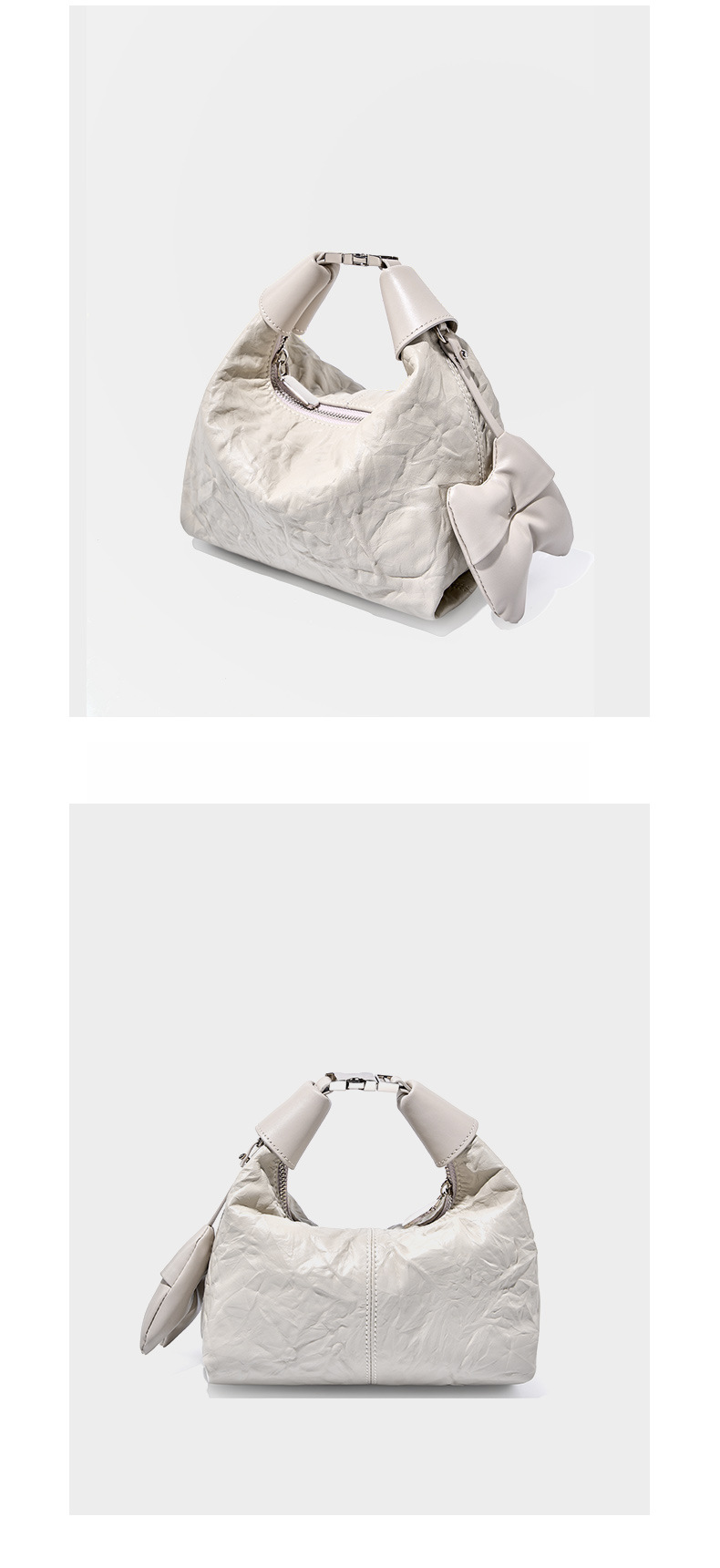 Women Wrinkled Cowhide Dumpling Bag Hand-held Diagonal Cross Bag White