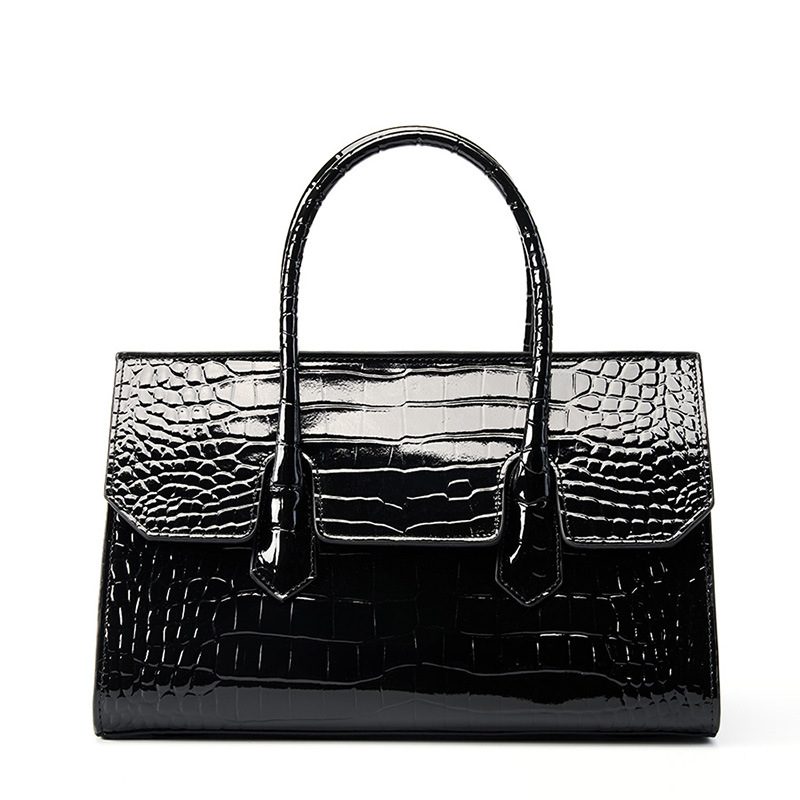 Genuine Leather Women Tote Bag Shoulder Bag Black