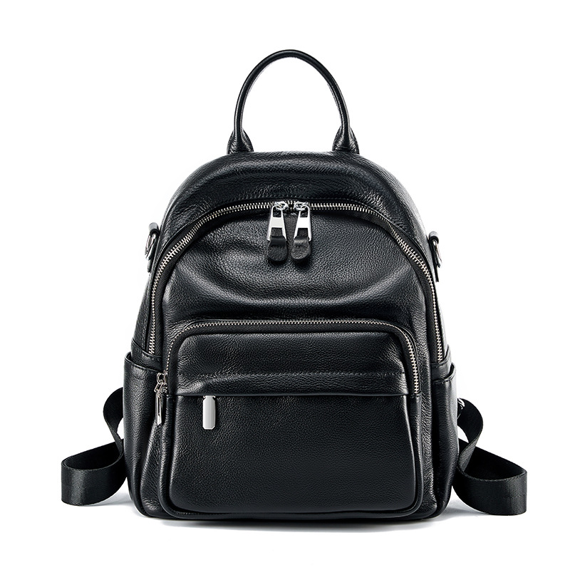 Genuine Leather Ladies' Large Capacity Travel Backpack Black