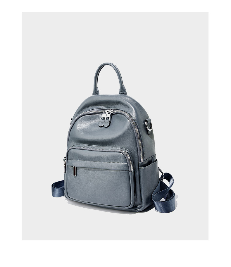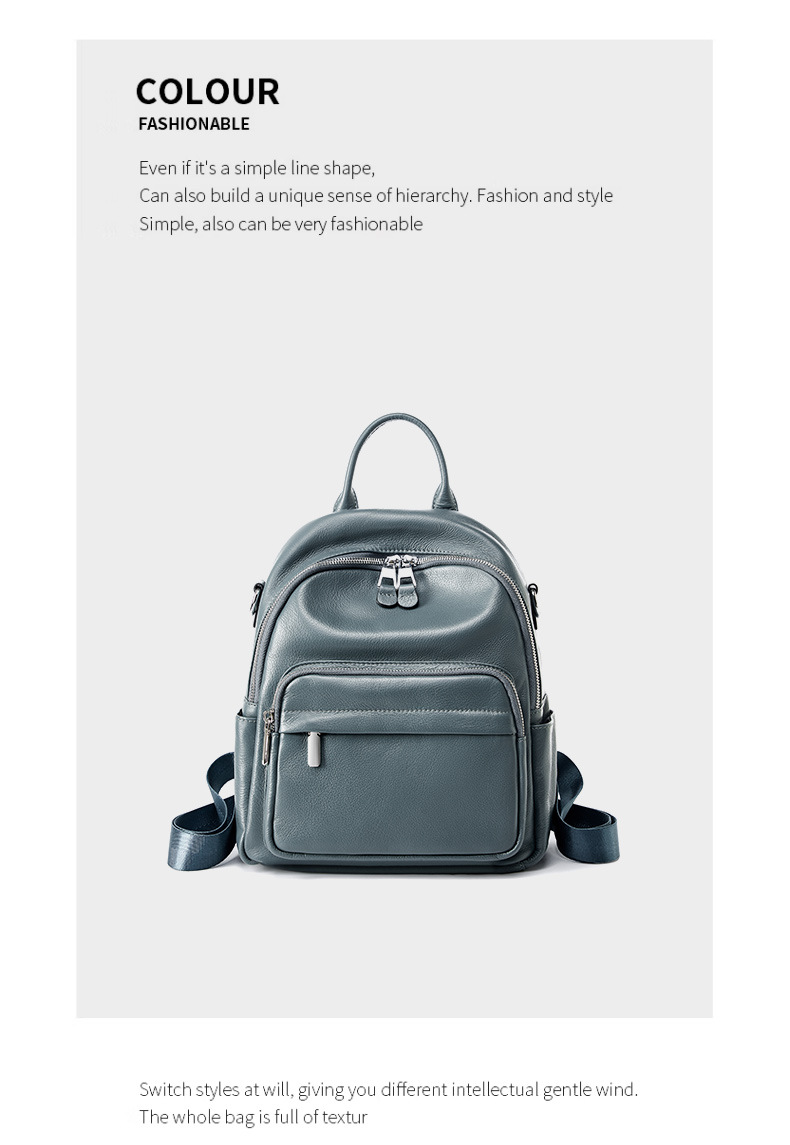 Genuine Leather Ladies' Large Capacity Travel Backpack Blue